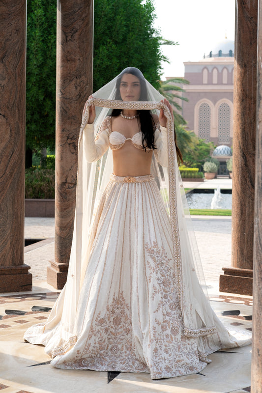 Pearl-fection White Trail Lehenga Set