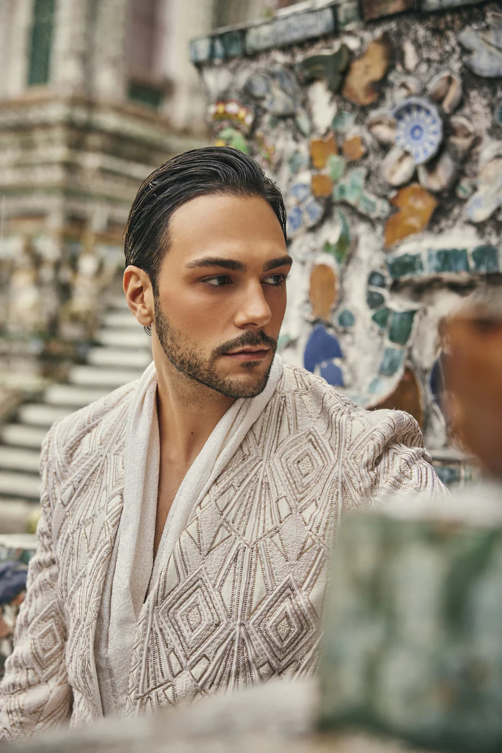 In the land once known as Siam — now Thailand — where gilded architecture meet colonial charm and spirituality breathes through every stone, our new collection 11:11 in Siam was born.This edit is a seamless confluence of cultures — where the spiritual serenity of the Bodhi Tree and the universal symbolism of the Tree of Life meet the grandeur of European architecture, echoing quiet strength and interconnected beauty.Flowing silhouettes, intricate threadwork, and timeless Indian artistry are reimagined in a landscape where East meets West. Every ensemble is designed as a meditative journey — with motifs drawn from temple carvings, mirrored mosaics, and sacred fig trees, fused with a palette inspired by weathered marble, golden stupas, and lush tropical blooms.Infused with mindful craftsmanship, 11:11 in Siam is not just a collection — it’s a spiritual bridge between tradition and modernity, memory and magic, rootedness and flight.